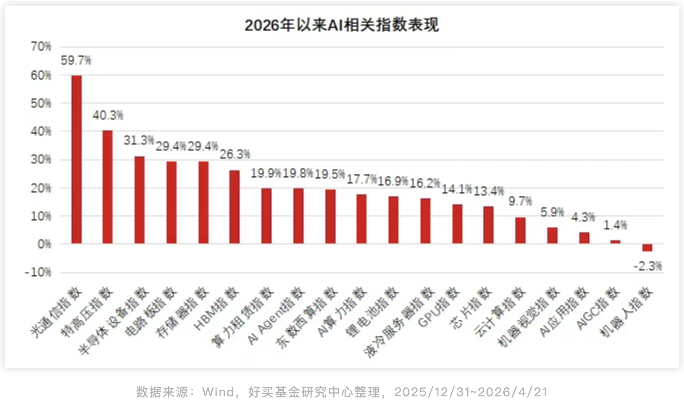 2026年開年至今,隨著AI下游應用的突破,AI產(chǎn)業(yè)鏈板塊持續(xù)領跑市場,成為驅(qū)動寬基指數(shù)上行的核心主線。