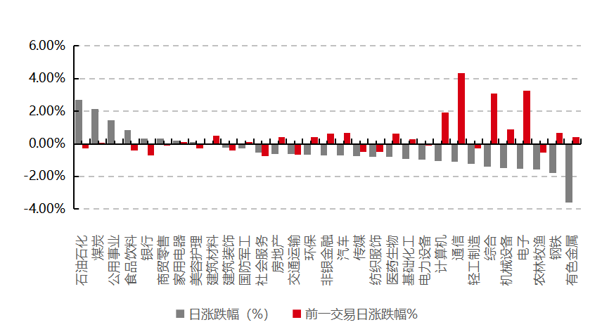 31個申萬一級行業(yè)中有8個行業(yè)上漲。其中,石油石化、煤炭、公用事業(yè)表現(xiàn)居前,漲跌幅分別為2.71%、2.13%、1.45%,農(nóng)林牧漁、鋼鐵、有色金屬表現(xiàn)居后,漲跌幅分別為-1.55%、-1.79%、-3.59%。滬市有668只個數(shù)上漲,占比28.93%,深市有636只個數(shù)上漲,占比22.05%。非ST個股中,55只個股漲停,16只個股跌停。股指期貨主力合約3個合約均下跌,其中,3只期指好于現(xiàn)貨指數(shù)。