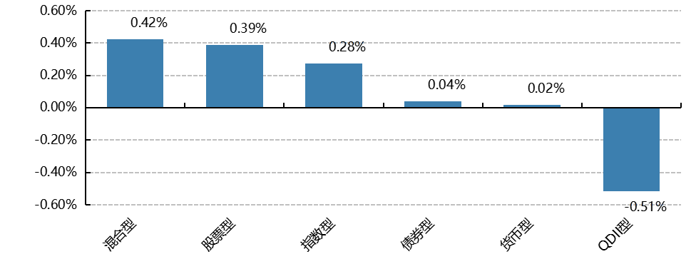 圖表:上周各類基金平均凈值漲跌幅